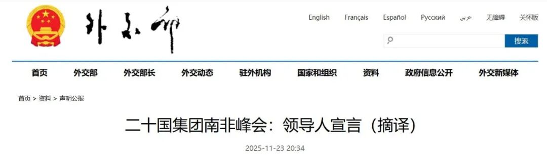 我们,2025年11月22日至23日相聚于南非约翰内斯堡的二十国集团领导人,出席南非主席国在非洲大陆举行的首次历史性峰会,应对主要全球挑战,探讨促进以团结、平等、可持续为关键支撑的包容性增长。