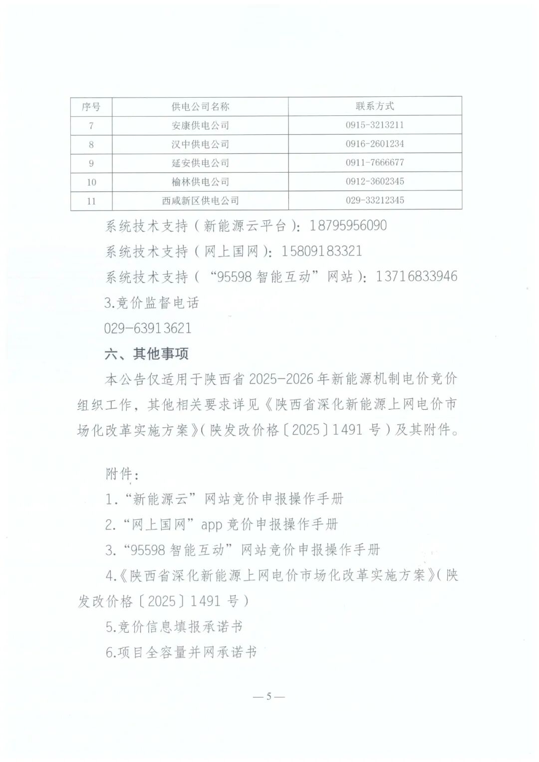 本公告仅适用于2025-2026年陕西省增量新能源项目机制电价竞价组织工作,其他相关要求详见《陕西省深化新能源上网电价市场化改革实施方案》(陕发改价格[2025]1491号)及其附件。