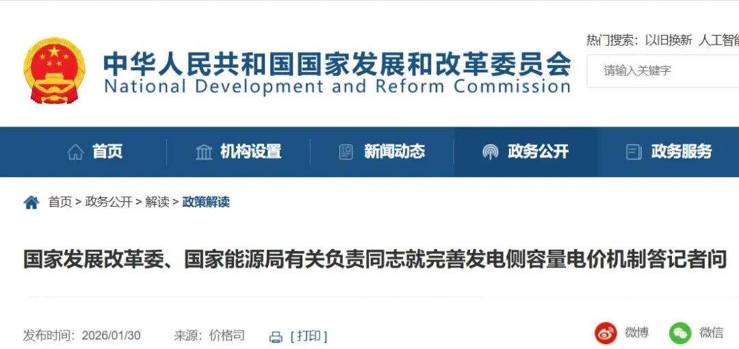 为贯彻落实党中央和国务院关于推进能源领域价格改革,加快建设新型能源体系的决策部署,引导调节性电源平稳有序建设,保障电力系统安全稳定运行,助力能源绿色低碳转型,近日国家发展改革委、国家能源局联合印发《关于完善发电侧容量电价机制的通知》(发改价格〔2026〕114号,以下简称《通知》)。就此,记者采访了国家发展改革委、国家能源局有关负责同志。
